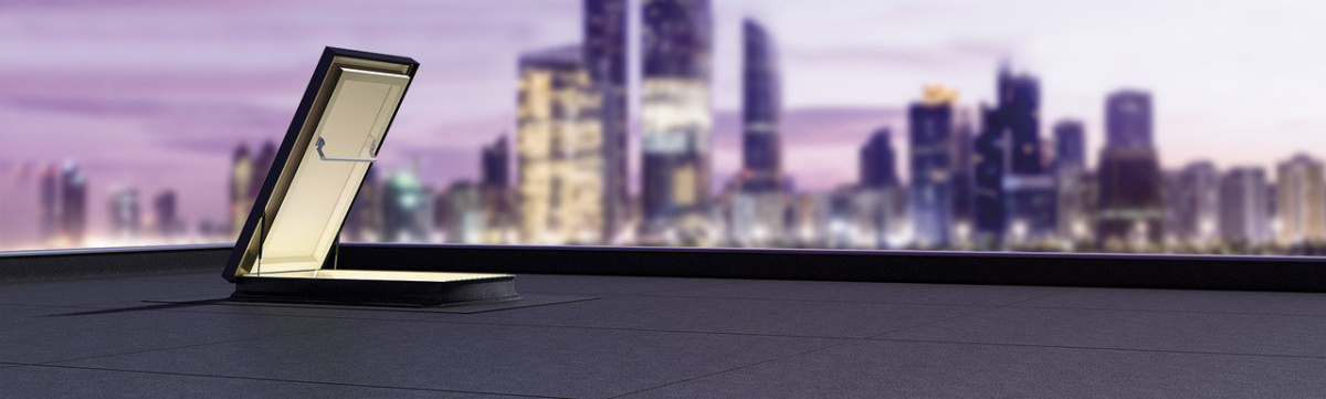 - Люк-выход на крышу для отапл. помещений ПВХ белый Fakro DRL люк для плоских крыш 60*120см