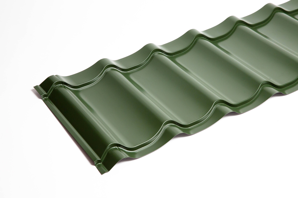 - Металлочерепица Монтеррей классик оцинкованная с полимерным покрытием 0.4x1180мм RAL 7004