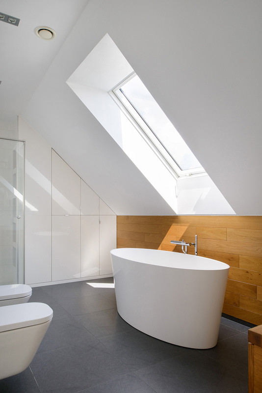 Подходит для светлых интерьеров и влажных помещений, а также если в помещении уже есть пластиковые (вертикальные) окна. Профиль специально создан для наклонных мансардных окон: теплопотери и конденсация минимизированы.