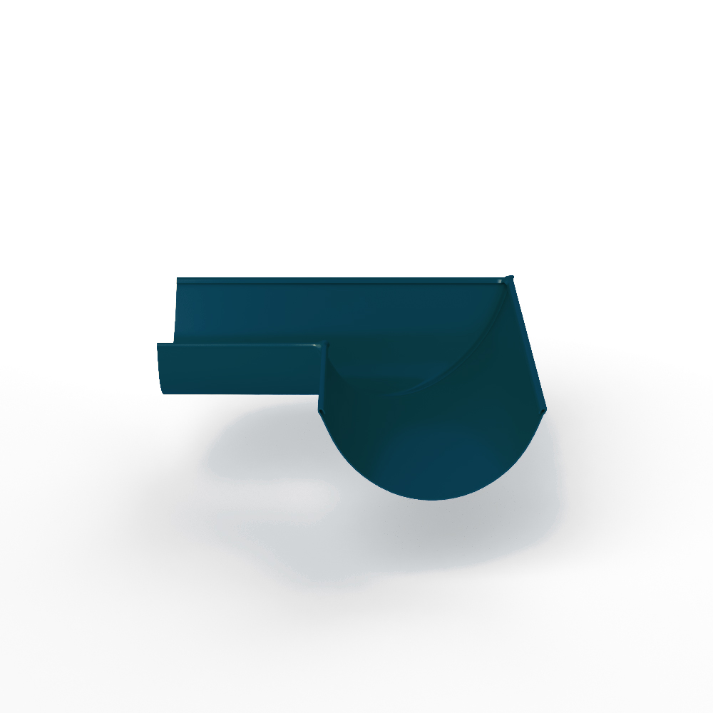 - Угол 90 градусов водосточного желоба оцинкованный порошок ф120х400х400мм RAL 5020