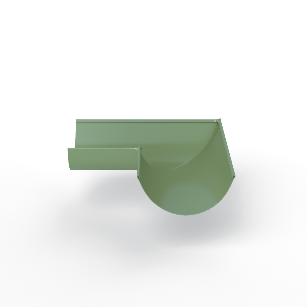 - Угол 90 градусов водосточного желоба оцинкованный порошок ф120х400х400мм RAL 6021