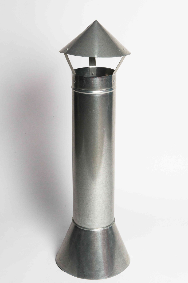 - Зонт вытяжной вентиляционный оцинкованный с трубой 625мм и юбкой ф250мм