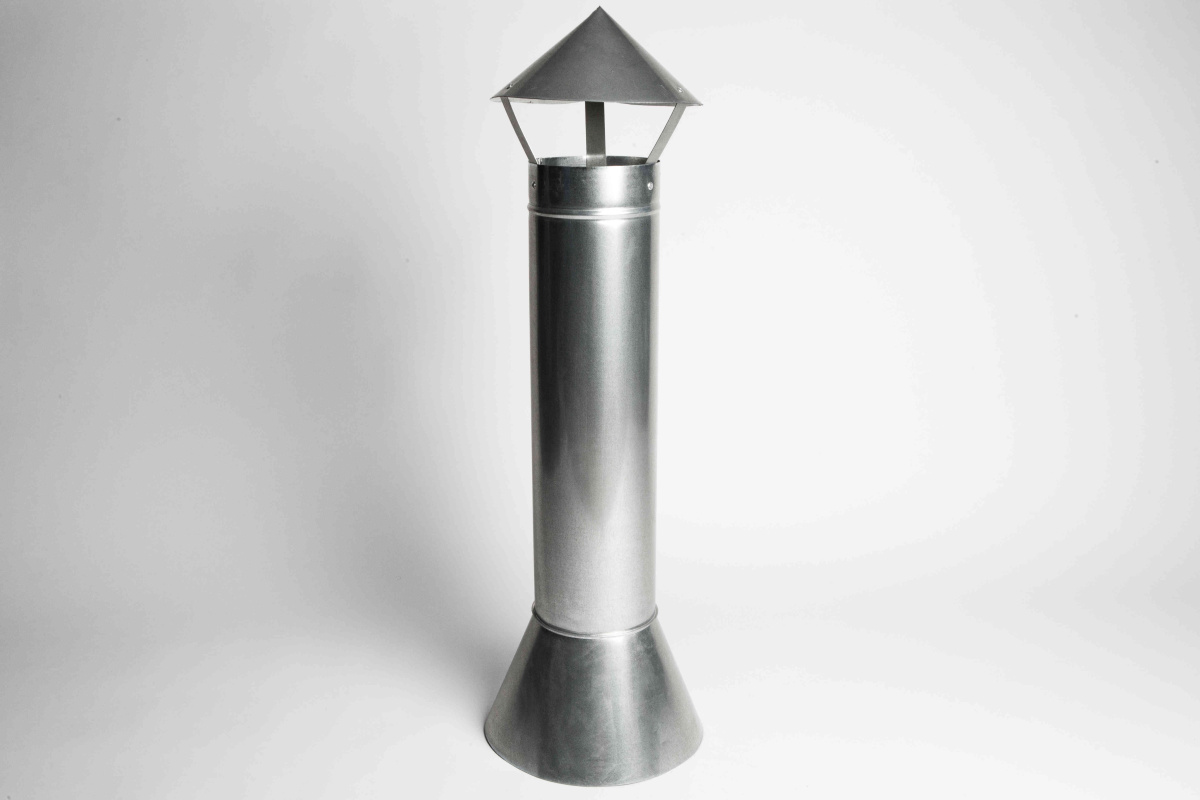 - Зонт вытяжной вентиляционный оцинкованный с трубой 625мм и юбкой ф300мм